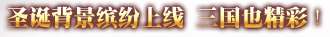 不用等待圣诞钟声的敲响,飘然而至的圣诞气息就浓浓地铺满了大街小巷。《兵临城下》于12月23日~12月30日将全服更新圣诞背景。一起来感受浓浓的节日氛围吧! 【活动时间】:12月23日维护更新后~12月30日维护更新后 【活动范围】:《兵临城下》全服 【活动内容】: 圣诞节活动期间《兵临城下》全服更新圣诞缤纷背景,共享欢乐节日! 对各服建造了高级城池的玩家,《兵临城下》更有好礼相赠!在本次活动开始后将开放使用【精彩圣诞】外观,无需激活费用!各位拥有高级城池的玩家,还可以自定义设置高级城池旌旗旗号!赶快参加DIY,让你的城池个性十足! 想让你的城池与众不同吗?赶紧来《兵临城下》! 【活动备注】: 1、 圣诞背景若显示有异,玩家可通过清理浏览器缓存解决,活动结束后全服圣诞背景下线; 2、 活动更新上线后,全服高级城池将开放魏蜀吴建筑风格外观、朱雀玄武功能外观以及盟战霸主外观; 3、 活动结束后高级城池圣诞外观可继续使用,旗号备选内容暂且限于部分百家姓姓氏。 4、 设置方法: 点击主公面板→建筑风格,选择建筑风格; 点击城墙→城池外观/联盟外观,选择设置; 点击主公面板→设置旗号,选择设置后,于地图预览。 |