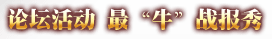 游戏中遇到的那些搞笑的、夸张的、雷人的或者你自认是独一无二的,都可以拿出来晒,跟大家分享,一不小心成了《兵临》之最,还有惊喜好礼呢! 【活动时间】:12月23日后~12月30日 【活动范围】:《兵临城下》全服 【活动内容】: 活动期间,在论坛的活动帖内按格式回复,新开帖无效。内容可以是涉及《兵临城下》战报的所有题材,最牛、最惨、最勇、最惊险战报等等等等。 本活动不设奖励名额上限,玩家可踊跃参与。 活动结束后,活动专员将对参与回帖进行规范性、真实性核查并评选出优胜玩家,获奖玩家可获得游戏内节日贺卡一封,以及论坛“欢乐圣诞战绩勋章”一枚。 【截图上传论坛方式】: 使用QQ聊天窗口的“捕捉屏幕”功能——>另存为本地电脑(保存格式:JPEG格式)——>点击活动主题帖下方的“回复”——>点击编辑帖子窗口下方上传附件的“浏览”,选择需要上传的活动图片上传。 【跟帖格式】: 主公名:吕布 服务器:1服 作品名:(为你的参赛作品取个响亮的名字) 图片:(有图有真相嘛) 相关链接:(战报详情链接) 【活动备注】: 1、 本活动仅限活动帖跟帖回复参与有效; 2、 主公名、服务器务必正确,否则视为自动放弃处理; 3、 发帖内容务必真实,战报详情链接务必正确; 4、 活动玩家可重复参与获奖,奖励累计次数最大为三次。 |
